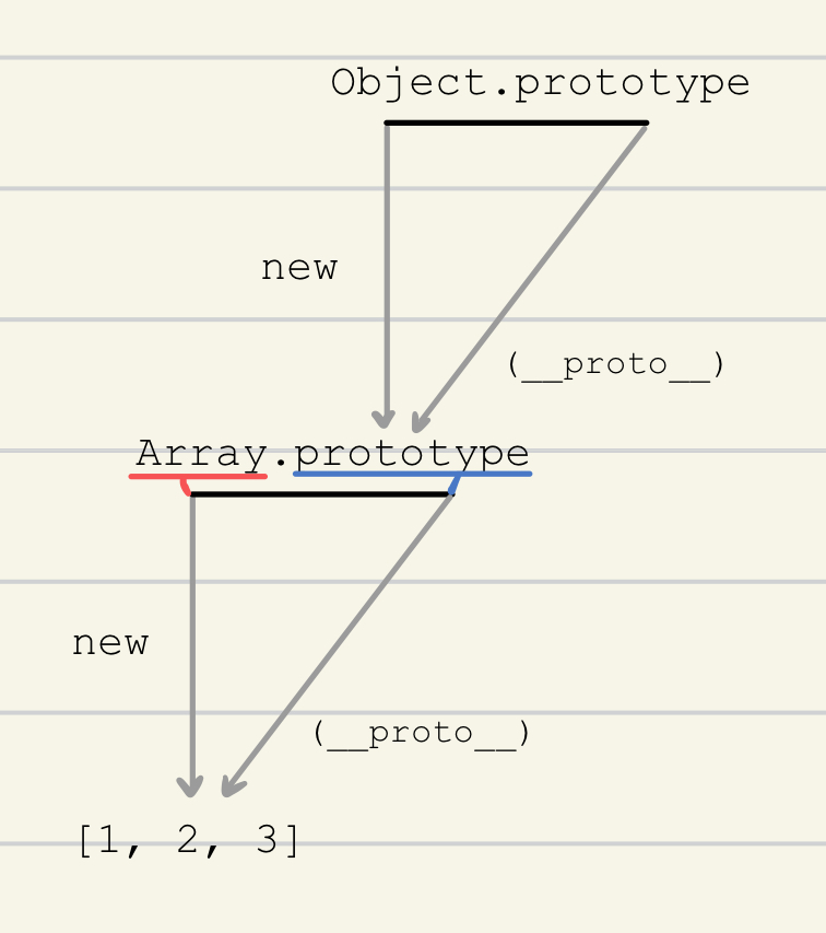 - 아래와 같이 배열을 선언했을 때, 프로토타입의 구조를 살펴보면 다음 그림과 같은 결과가 나온다.